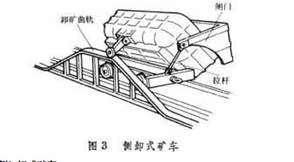 車廂的一側或兩側可以打開,借助裝在卸礦點上的曲軌使礦車傾斜,拉桿打開側門卸載